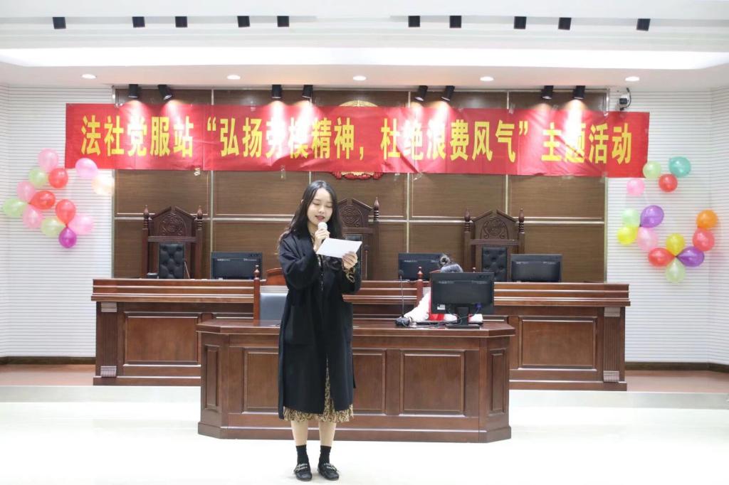 本次活动是在习近平总书记对制止餐饮浪费行为作出重要指示下,为了响应党的号召而举办的以“弘扬劳模精神,杜绝浪费风气”为主题的特色活动。为了鼓励同学们将节约粮食的风尚牢记在心,将勤俭节约热爱劳动的美德落实在实际行动中,法社学院党员服务站的部长、干事以及各班入党积极分子积极地参加了本次活动。
