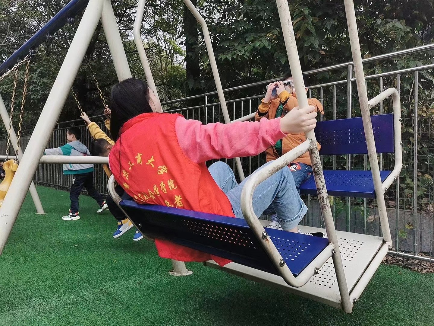 当日上午,志愿者从学校出发,历经2小时抵达乐一融合幼儿园。初时,孩子们见到陌生的志愿者还有些羞涩,但在志愿者的陪同下,孩子们逐渐敞开心扉。欢乐的音乐响起,是他们在唱歌跳舞,嬉笑声传来,是他们在玩耍。艳阳高照,秋风拂面,大手牵小手,志愿者带着小朋友来到山野间感受大自然的美好,河边遍布他们的足迹。快乐的时光总是短暂,九个小时的陪伴,孩子们变得开朗,志愿者也体会到前所未有的温暖。伴随着落日余晖,此次公益活动落下了帷幕。