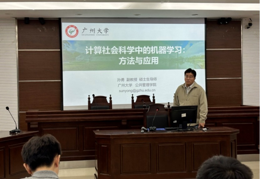 其次,孙勇副教授以《计算社会科学中的机器学习:方法与应用》为题,从实证主义的起源出发,回顾了社会科学研究方法发展脉络,并详细介绍了机器学习的基本原理及运用。他还重点介绍了机器学习在城乡治理与社会学研究中的具体应用,强调了量化技术与结构化程序在当代社会科学研究中的重要性。其结合自身在国家级课题与高水平学术期刊发表的经验,展示了计算社会科学方法在提升研究精度与解释力方面的潜力。