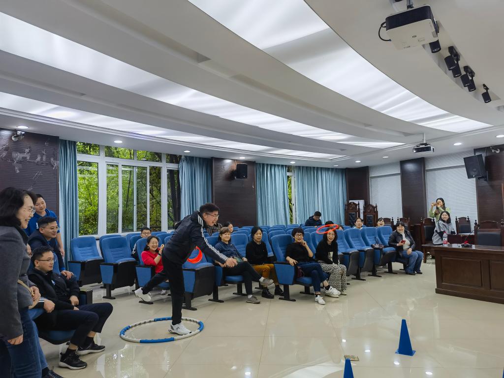 本次活动在学院模拟进行,老师们站在指定位置将塑料圈扔出并套住投掷筒获得积分,并通过积分多少确定比赛名次。活动开始后,老师们踊跃排队进行比赛,现场气氛十分热烈。