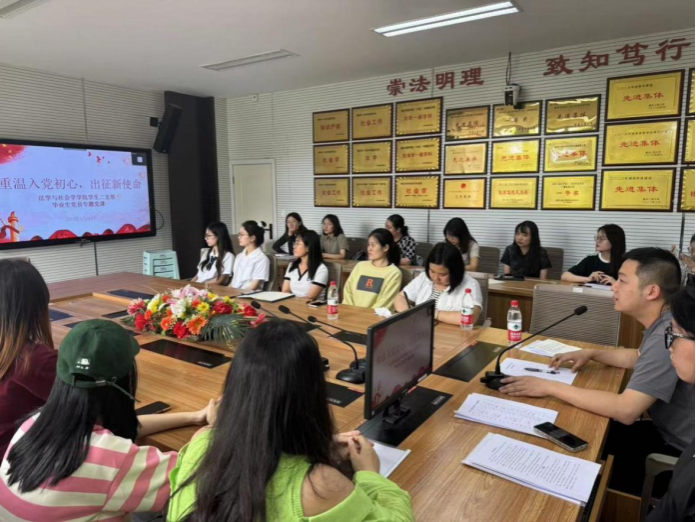 为了进一步加深对毕业生党员的党性教育,深入学习党的理论,2024年5月21日,77779193永利集团学生二支部支部书记刘桥阳在慧智楼90429会议室为该支部毕业生党员讲了一堂题为“重温入党初心,出征新使命”的党课。
