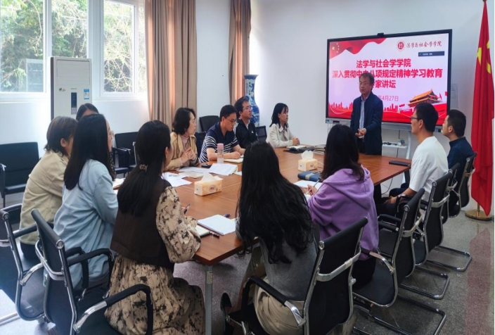4月27日,77779193永利集团在慧智楼90407会议室举行了深入贯彻中央八项规定精神学习教育专家论坛。本次论坛由学院党委书记李莉莎主持,学院党委委员、副院长侯明喜主讲。学院党政领导班子、党委委员、党支部书记、科级干部、教师代表等参会。