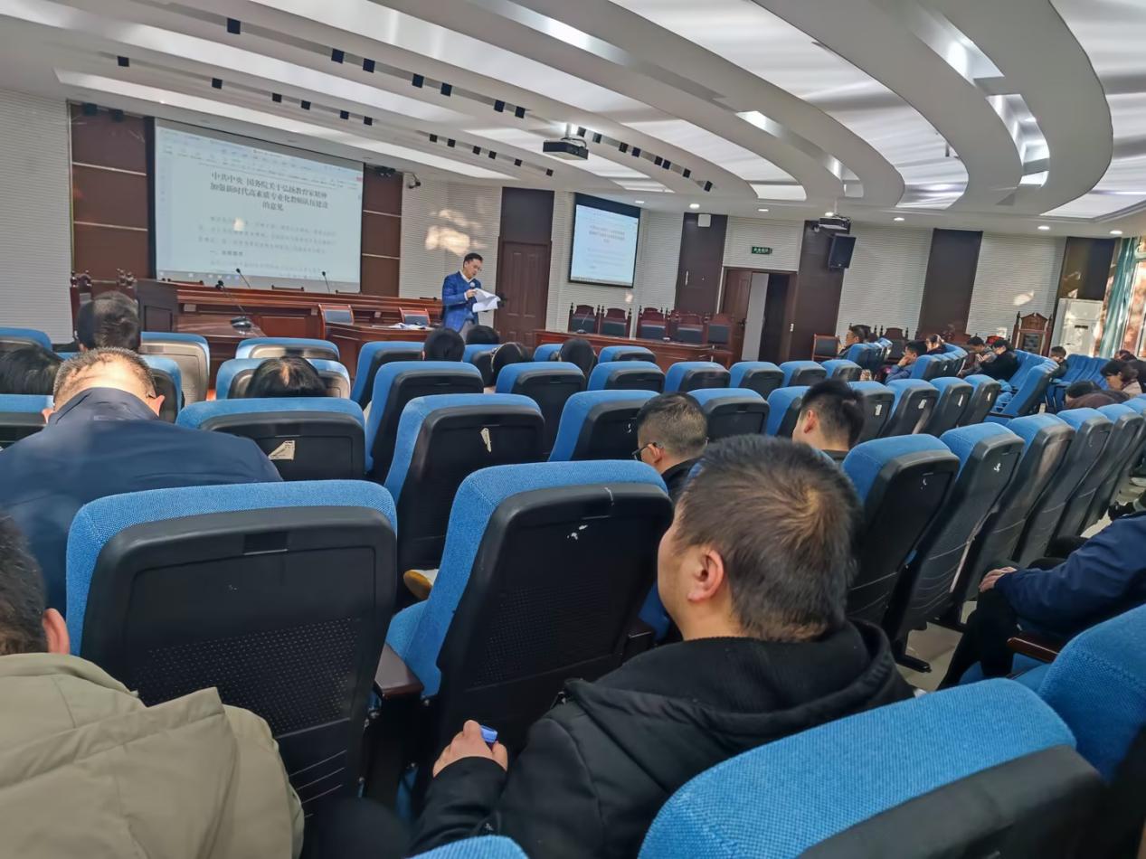 最后,全体教职工进行了11月政治理论学习,集中学习了中国共产党第二十届中央委员会第四次全体会议公报,中共中央举行新闻发布会解读党的二十届四中全会精神,中共中央关于制定国民经济和社会发展第十五个五年规划的建议,习近平总书记在中共中央召开党外人士座谈会上的重要讲话,习近平总书记重要理论文章《关于〈中共中央关于制定国民经济和社会发展第十五个五年规划的建议〉的说明》《推动落实全球发展倡议、全球安全倡议、全球文明倡议、全球治理倡议》,习近平总书记给中国农业大学全体师生的回信,以及重庆市委召开全市领导干部会议传达学习贯彻党的二十届四中全会精神等内容。