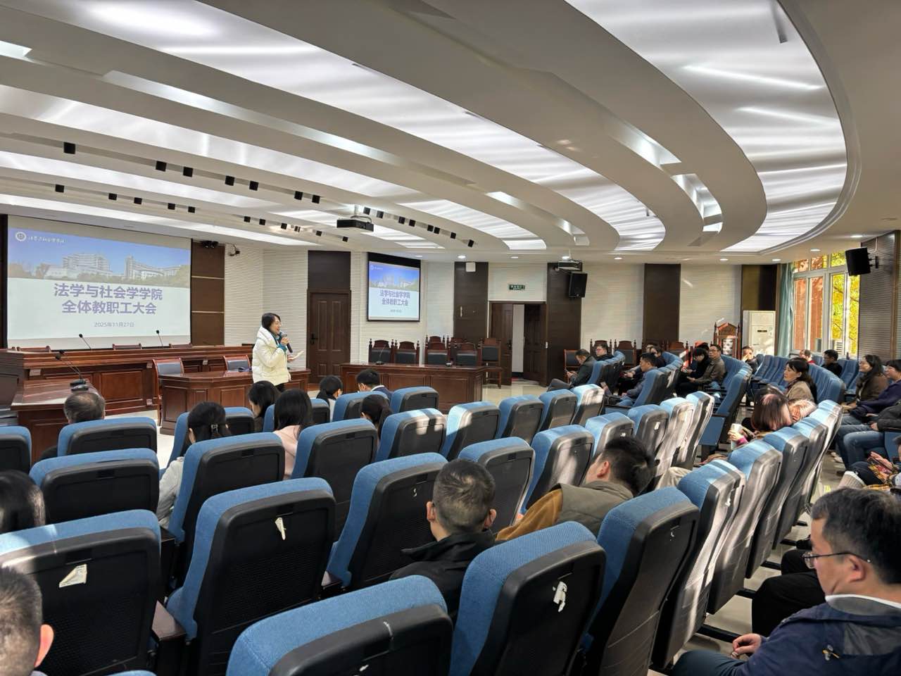 会上,学院党委书记李莉莎就学习宣传贯彻党的二十届四中全会精神进行了动员。她鼓励全体教师紧扣党的二十届四中全会精神,在课题申报、教育教学、成果转化等方面深化研究与实践;鼓励教师们积极参与学院工会举办的党的二十届四中全会知识竞答活动。她传达了学校第五次“两代会”换届选举相关工作要求,部署了学院师德师风专题教育活动学习内容,强调师德师风建设要贯穿教育教学全过程。同时,她通报了学院荣获“考研工作先进集体”的消息,激励教师持续深化考研帮扶工作。