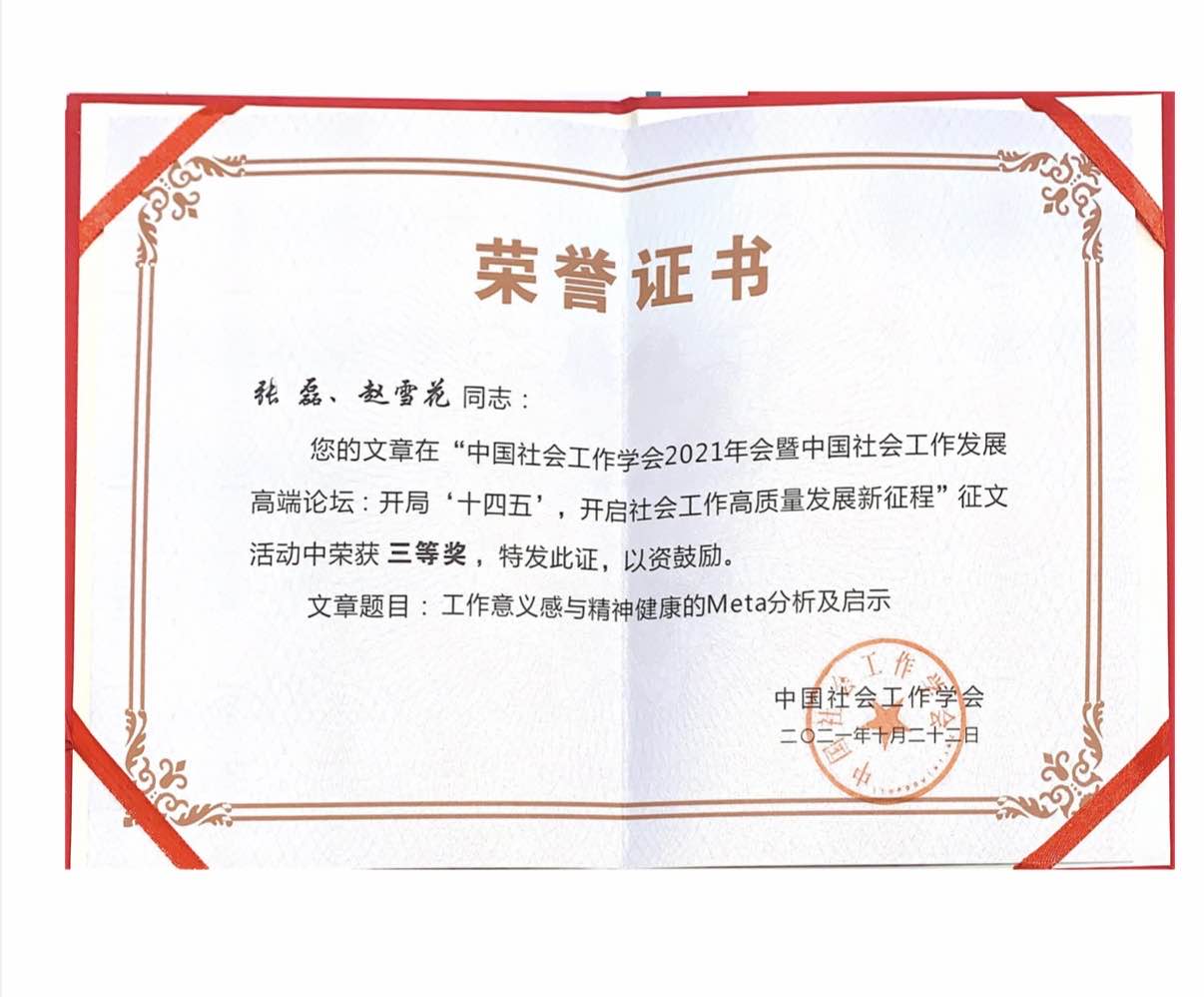 2021年10月22日,“中国社会工作学会2021年暨中国社会工作发展高端论坛:开局‘十四五’,开启社会工作高质量发展新征程”研讨会在浙江省宁波市成功召开。本次论坛由中国社会工作学会主办,浙江万里学院和宁波市社会工作协会承办,宁波万里对口协作和反贫困研究院、美亚联创(北京)科技有限公司等单位协办。此次论坛是中国社会工作专业最高级别的会议,有来自民政部慈善事业促进和社会工作司社会工作处长王铮健、中国社会工作学会会长王思斌教授、中国社会工作学会副会长关信平教授等知名专家学者均出席了本次盛会。经中国社会工作学会评审专家对来自北京大学、复旦大学、华东理工大学等全国高校社会工作专业老师和学生的投稿论文进行初选、复审,最终遴选出34篇优质论文。我校学子汪洋等六位同学分别获得4项奖项,其中汪洋同学、刘双同学合著作品获得年会征文比赛二等奖,孙家乐与钟宇豪合著作品、潘乐与张磊合著作品、张磊与赵雪花合著作品分别获得三等奖。指导老师均为蒙艺老师。