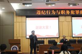 在第二部分中吕天庆会长重点介绍了如何把握违纪行为和职务犯罪的区别,分别阐述了什么是违纪行为和职务犯罪以及类型,违反党章和其他党的法规、法律法规、党和国家政策、社会主义道德、危害党和国家人民的利益行为就是违纪行为,违纪行为又分为六大类,政治、组织、廉洁、工作、生活、群众,共计220余种。而职务犯罪实质上就是权力犯罪,分为贪污贿赂罪,渎职罪,侵犯公民人身权利、民主权利。吕天庆会长强调要准确把握违纪行为与职务犯罪的界限,首先从构成要件上进行区别和把握,在这吕会长以贪污罪为例为我们详细分析了如何从构成要件上区分违纪行为和职务犯罪。其次,提出了从认定数额上进行区分和把握,这是区分违纪行为和职务犯罪的主要依据。最后,从具体情节上进行区分和把握违纪行为和职务犯罪。