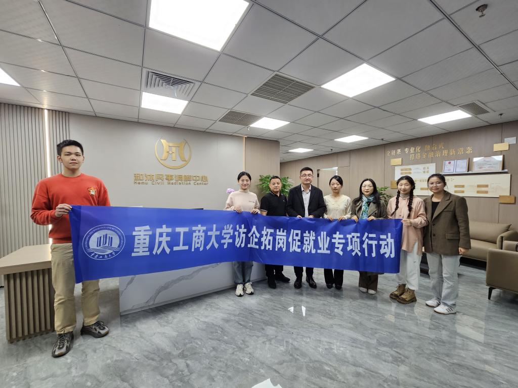 11月9日,法学系主任公杰、学团办主任何祖润、法学系教师白玉带领4名学生走访重庆市九龙坡区和沐民事调解中心,师生队伍参观体验了中心的云上共享法庭等先进设备,中心主任潘结平向学院师生介绍了中心的业务范围、发展优势及招聘需求,双方就人才输送、实习就业及科研合作方面达成合作意向。