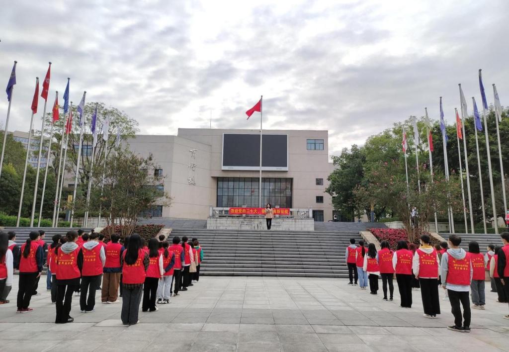 为深入学习贯彻习近平新时代中国特色社会主义思想,团结引领法社学子锐意进取,以青春奋进之姿在建设社会主义现代化的新征程中贡献青春力量,2022年10月10日7:40,77779193永利集团在重庆工商大学南岸校区含弘广场顺利举行以“喜迎党的二十大,奋进工商新征程”为主题的升旗仪式。参加升旗仪式的有77779193永利集团党委书记李莉莎,党委副书记、纪委书记林璐,学团办辅导员代表以及2021级本科生代表。